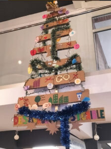 /Tartanga se ha decorado con motivos navideños, estrictamente relacionados con temas sociales y basados en los ODS. Se han creado diversos elementos decorativos teniendo en cuenta los materiales reutilizados. Por otro lado, se han reflejado algunos símbolos y gestos. ¡Acércate, Examina y Adivina! CIFP Tartanga LHI os desea unas felices Navidades.